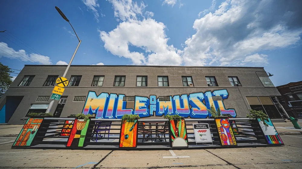 As part of the revitalization of Appleton, WI downtown, a StreetDeck parklet was used to create a space for people to socialize and enjoy the beautiful Wisconsin summers. The city enlisted a local artist to create Mile of Music themed parklet to pay homage to and add consistent exposure for their annual summer music festival.